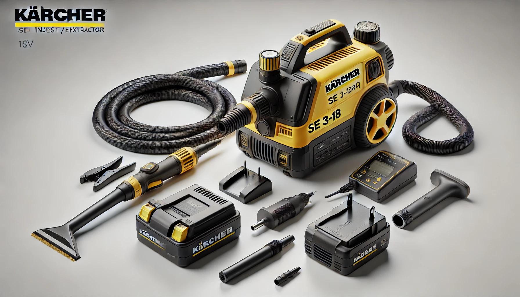 Le Kärcher SE 3-18 est un injecteur-extracteur sans fil conçu pour offrir un nettoyage en profondeur des surfaces textiles comme les tapis, moquettes, canapés, et même l’intérieur de votre véhicule. Ce modèle fonctionne sur batterie, offrant ainsi une grande mobilité et une facilité d’utilisation inégalée.
