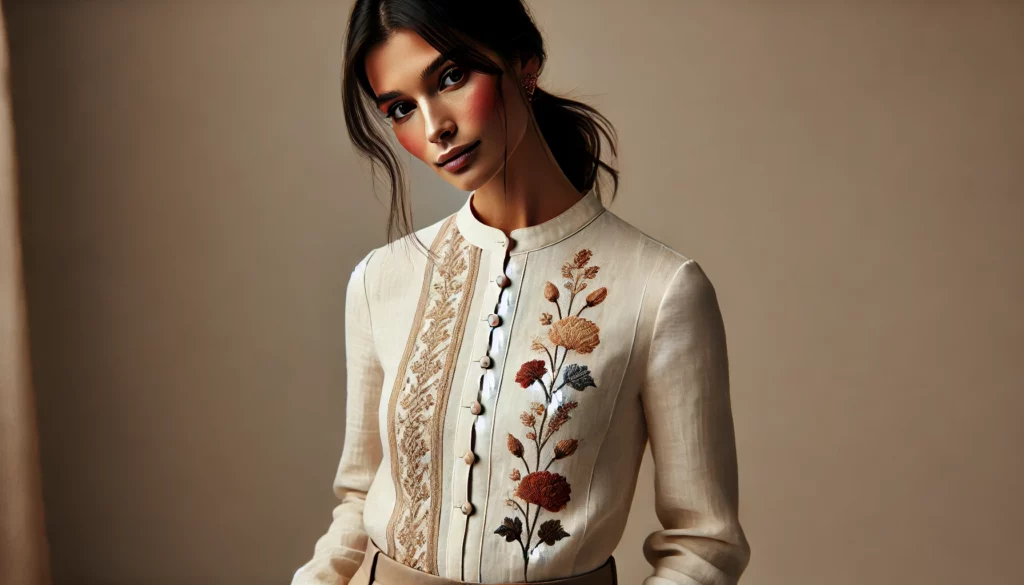 Cette blouse associe broderies discrètes et teinte verte douce pour un rendu bohème chic sans effort. Elle se porte avec un jean brut, un pantalon fluide beige, ou même une jupe longue pour un effet bohème. Sa coupe ample en fait une pièce parfaite pour toutes les morphologies.