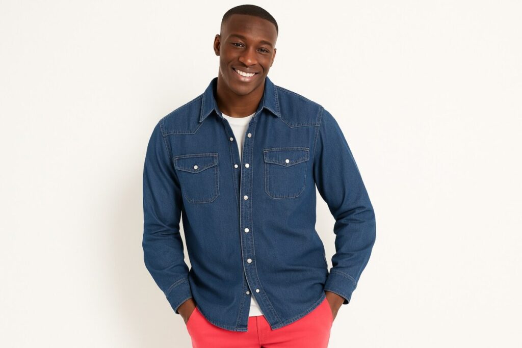 C’est le genre de pièce qui s’adapte à toutes les situations : au boulot avec un chino, en week-end sur un tee-shirt blanc, ou même sous un pull en hiver. La matière en jean stone est robuste sans être rigide, et les pressions remplacent avantageusement les boutons classiques — pour un look plus moderne et une praticité au top.