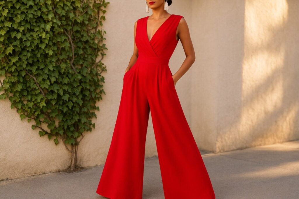 Vous cherchez une tenue chic, minimaliste et confortable pour vos événements de l’été ? Ne passez pas à côté de cette combinaison rouge élégante pour femme, actuellement à 31,99 € au lieu de 45,23 € sur LightInTheBox. Avec son col en V profond, sa taille cintrée et ses jambes larges fluides, elle allonge la silhouette tout en assurant un look classe sans effort.