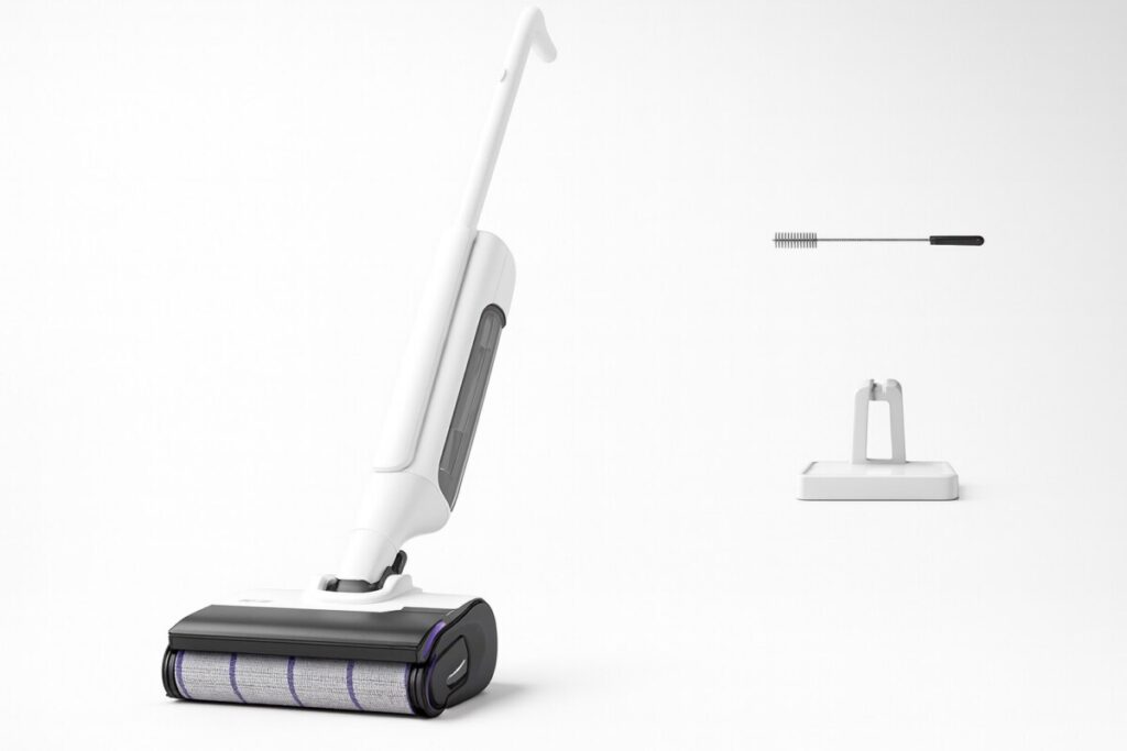 Avec ses réservoirs séparés et son autonomie impressionnante, il gère jusqu’à 60 minutes de ménage sans recharge, en conservant toute sa puissance. Plus besoin de sortir l’aspirateur, la serpillère, puis de passer derrière avec une lingette : un seul appareil, un seul passage, et c’est propre.