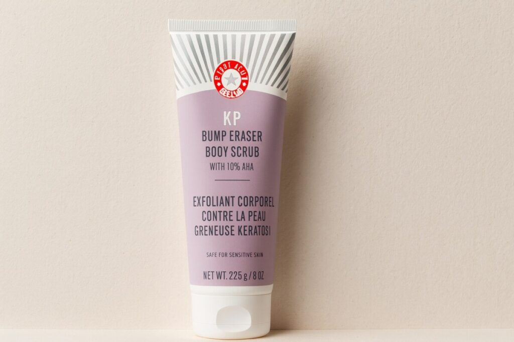 Si vous luttez contre la kératose pilaire (les petites bosses sur les bras ou les cuisses), la peau sèche ou rugueuse, le KP Bump Eraser Body Scrub with 10 % AHA de First Aid Beauty est fait pour vous. Grâce à sa combinaison de 10 % d’AHA (acides exfoliants) et de particules d’origine naturelle, il agit en profondeur et en surface pour lisser immédiatement la peau. Dès la première utilisation, la peau est plus douce et soyeuse.