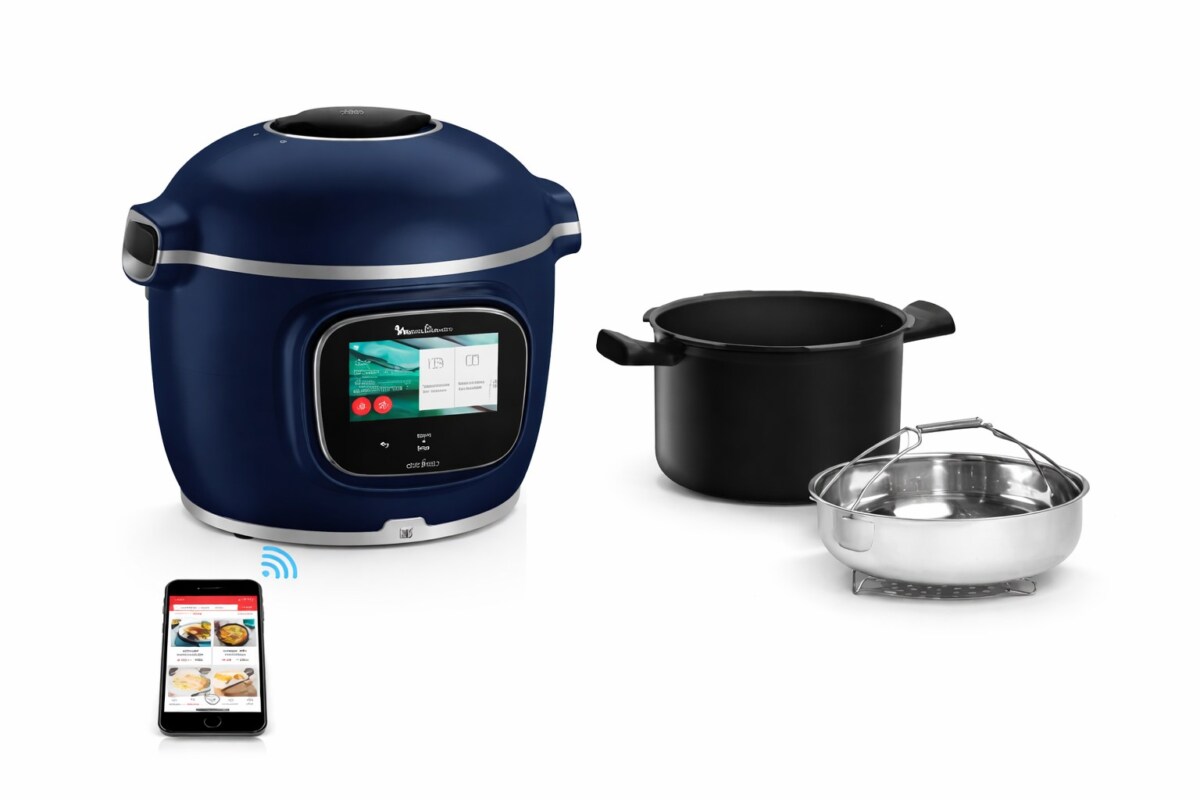 Ce modèle n’est pas un simple autocuiseur : c’est un véritable multicuiseur intelligent, pensé pour vous faire gagner temps, énergie et inspiration. Grâce à sa connexion Wi-Fi, vous accédez à une bibliothèque évolutive de recettes interactives, directement depuis son écran tactile 4,3’’. Finie la galère de chercher « que faire à manger ce soir » !