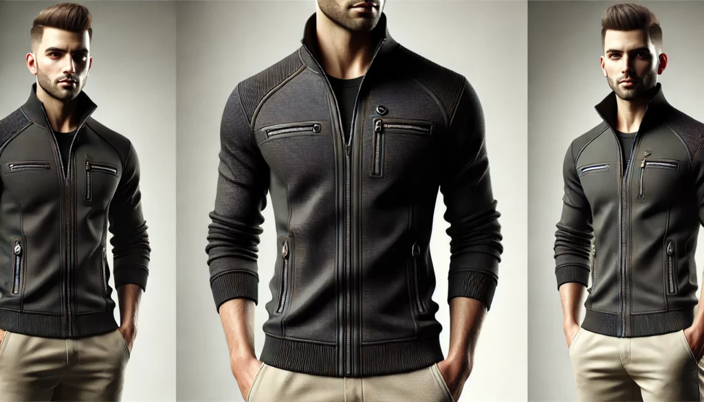 - Coupe : Standard avec finitions côtelées aux poignets et à la taille