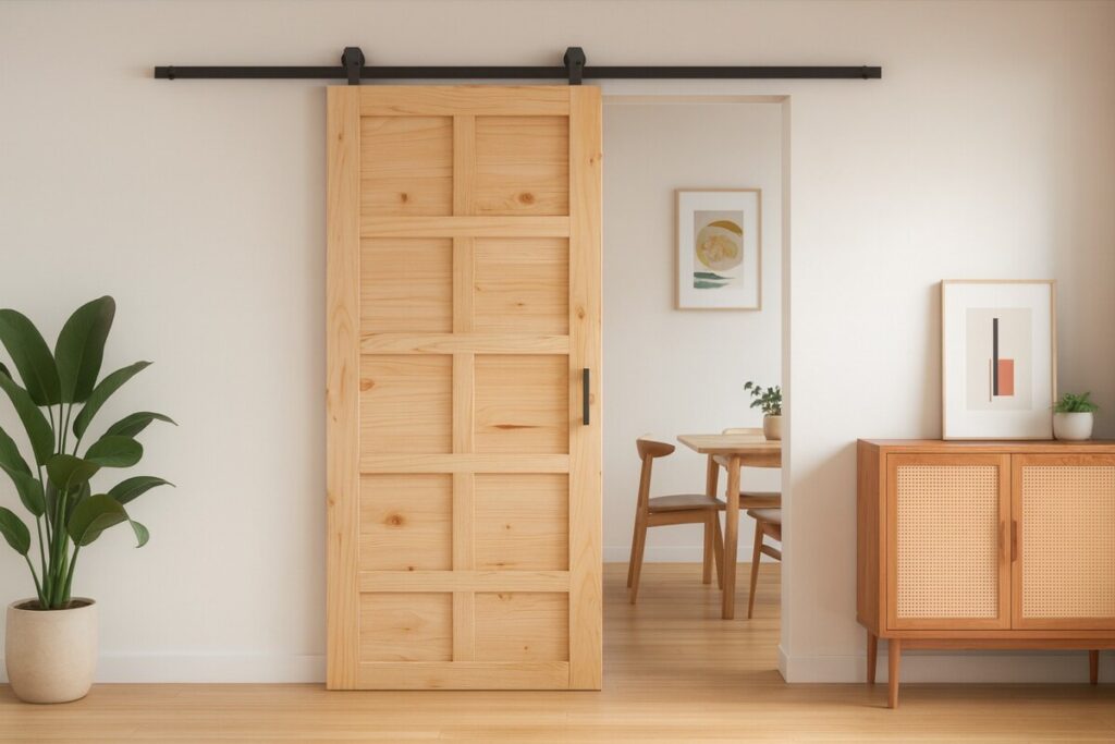 Cette version en bois massif séduit par sa simplicité élégante et sa polyvalence : elle peut être utilisée pour fermer une buanderie, séparer une cuisine ouverte, ou cloisonner un espace bureau dans un salon. Son look brut vous permet aussi de la repeindre ou de la patiner pour l’intégrer à un univers industriel, bohème ou scandinave.