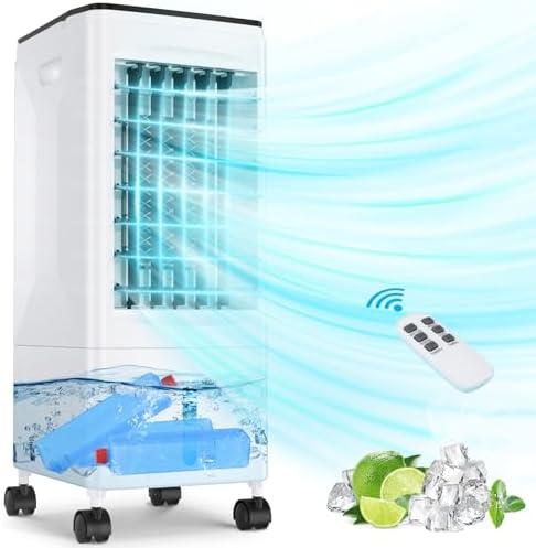 - 2 Portable Air Conditioner, 3 in 1 Evaporative Air Cooler, Oscillation, Timer 1-7H, 3 Speeds Remote Control, 3 Ice Box, 5.5L Water Tank & Wheels, 60W Mobile Air Conditioner
