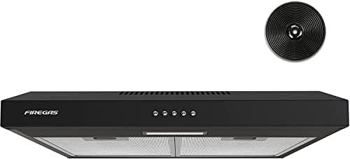 FIREGAS Hotte Aspirante 60 cm, Hotte Aspirante Sous Armoire En Acier Inoxydable, Hotte de Cuisine Sans Conduit Avec éclairage LED, Filtres en Aluminium Réutilisables, Filtre à Charbon, Noir