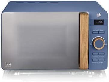 - 2 Swan Nordic Micro-ondes à affichage numérique 6 niveaux de puissance, minuteur 30 min, mode décongélation, design moderne avec poignée effet bois Bleu mat 20 l 800 W