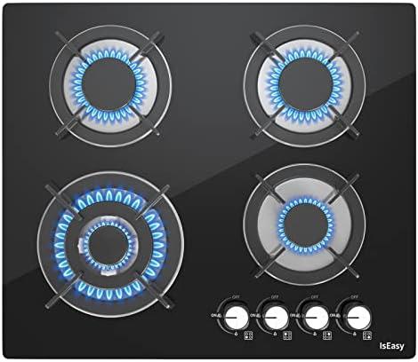 Plaque de Cuisson Gaz 4 feuxs, Plaque Gaz 4 feux, Plaque à Gaz – Cuisinière Encastrable – Gaz ville et bouteille (4 Brûleurs – verre)