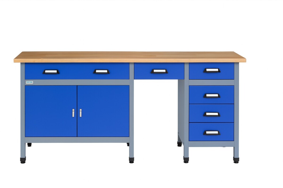 Construit en acier robuste avec un plateau en hêtre massif de 120 mm, cet établi de 105 kg combine solidité et durabilité. Il s’adapte à tous les types de projets : menuiserie, mécanique, réparation ou bricolage intensif. Avec une finition bleu outremer élégante, il apporte en plus une touche design à votre atelier.