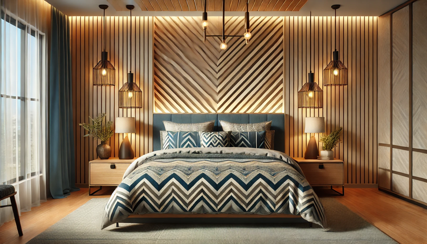- Motif dynamique avec des rayures en chevrons colorées.