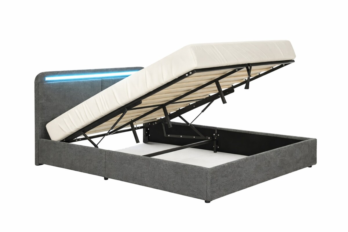 - Coffre de rangement : grand volume sous le sommier