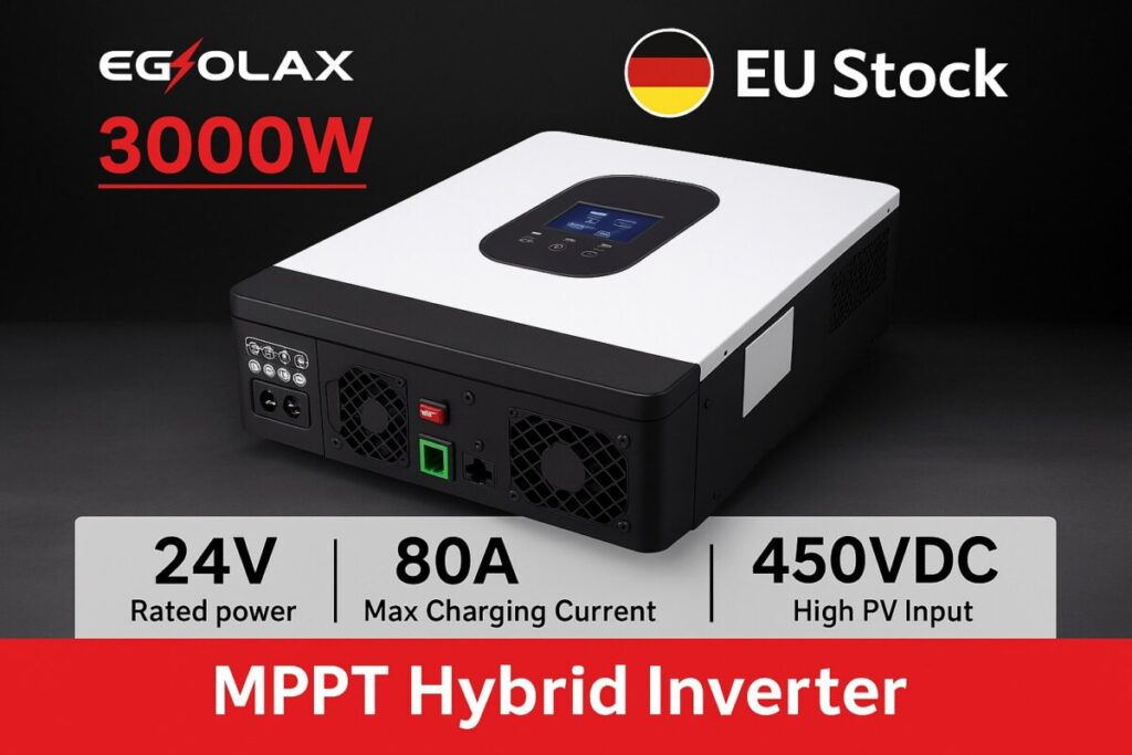 Conçu pour fonctionner hors réseau, cet onduleur hybride sinusoïdal pur prend en charge jusqu’à 3000W de puissance, avec une tension d’entrée PV maximale de 450VDC, et un chargeur MPPT de 80A intégré. Il est parfait pour les installations résidentielles, agricoles ou nomades.