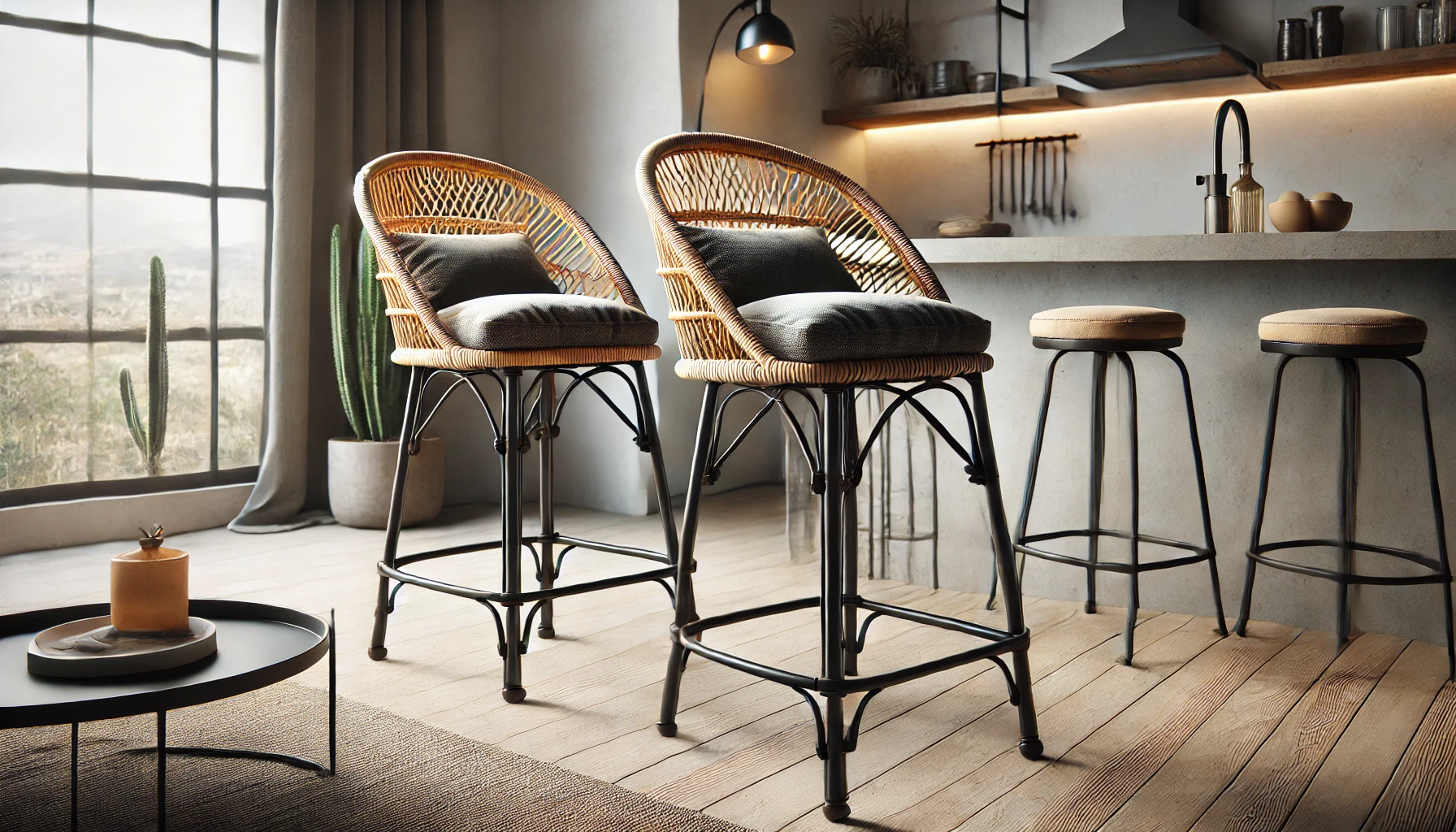 Envie d’une touche naturelle et tendance pour votre cuisine ou votre coin bar ? Le lot de 2 tabourets de bar SUMMER avec leur effet rotin et pieds en métal noir apportent une ambiance chaleureuse et contemporaine à votre intérieur. Alliant design moderne et confort, ces tabourets sont parfaits pour partager des moments conviviaux autour d’un verre ou d’un repas.