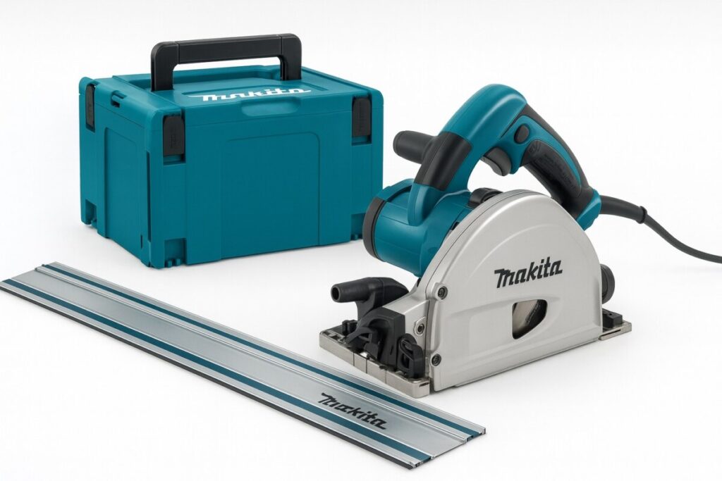 La Makita SP6000J, c’est un outil utilisé par les menuisiers et artisans professionnels, et qui fait aussi le bonheur des amateurs passionnés. Elle offre une précision chirurgicale grâce à son rail de guidage, une profondeur de coupe réglable ultra précise, et une stabilité parfaite même en coupe biaisée.
