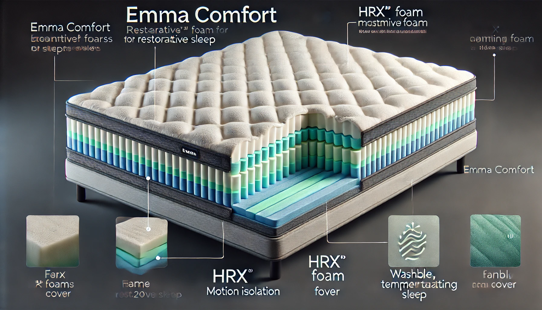 Le matelas Emma Confort 160×200 cm est conçu pour offrir un sommeil de qualité grâce à sa mousse HRX® et ses technologies brevetées. Voici un aperçu détaillé de ce produit.