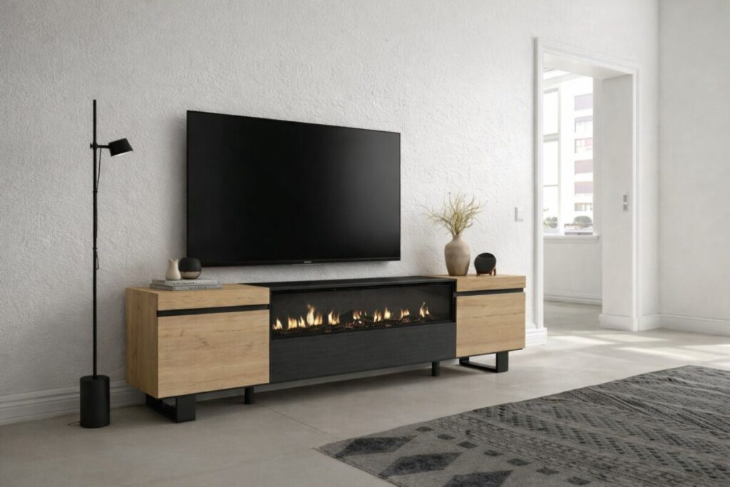 Il y a les meubles TV standards… et il y a ce meuble multifonction ultra-tendance signé Skraut Home. À la fois meuble de rangement, banc TV pour grands écrans et source de chaleur visuelle et réelle, il transforme une pièce en coin salon chaleureux et moderne, en quelques minutes.