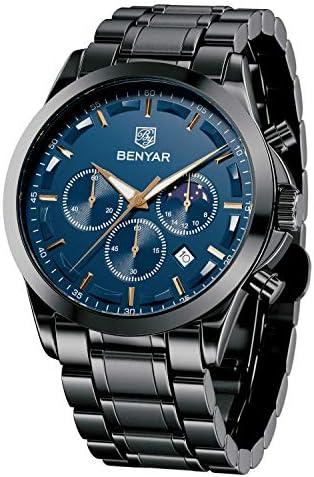 BY BENYAR Montre Chronographe en Acier Inoxydable étanche avec date Analogique à Quartz pour Homme
