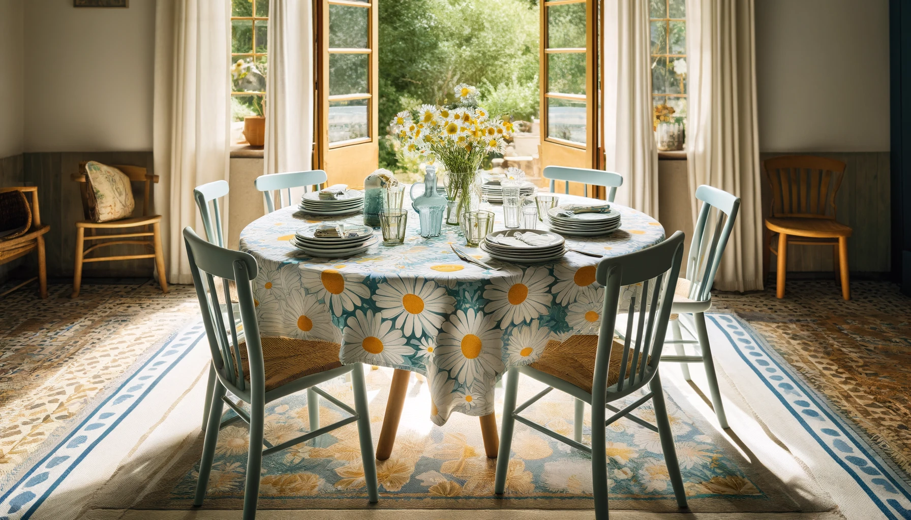 - Design Élégant : Les motifs de marguerites et l’encadrement géométrique ajoutent une touche florale et moderne à votre table.