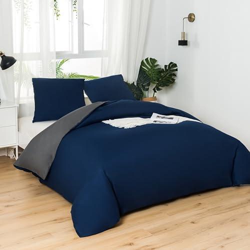 - 3 MOHAP Parure de Lit Réversible avec Fermeture éclair Microfibre 200×200 cm Bleu + Gris Foncé et 2 Taies d’oreiller 65×65 cm Housse de Couette Adulte