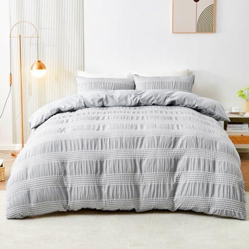 Qucover Housse de Couette 220x240cm, Ensemble de Literie en Microfibre Doux et Confortable avec 2 Taies d’oreiller 50x75cm, Parure de Lit Adult Gris Motif Moderne Ryure et avec Fermeture Éclair
