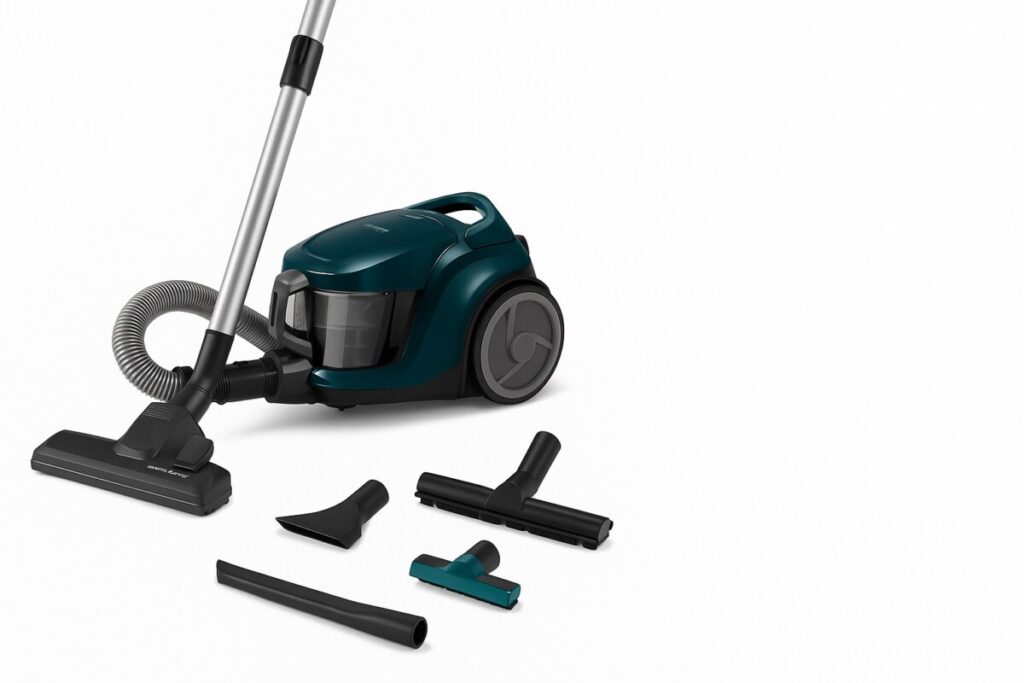 Cet aspirateur allie performance, praticité et silences : seulement 69 dB, maniable grâce à ses 5,6 kg, et doté d’un enrouleur de câble automatique. Parfait pour les sols mixtes (carrelages, parquets, tapis), il combine efficacité d’aspiration (technologie QuattroPower) et hygiène maximale (filtre HEPA capturant 99,99 % des particules). 👉 Découvrez-le ici :