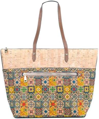 - 3 DeCarbonize Sac à main en liège pour femme – Grand sac à bandoulière durable en cuir végétalien – Sac fourre-tout – Sac de plage