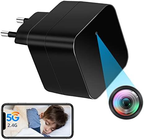 Nisanuki Caméra Espion WiFi, 5G et 2,4G Caméra Cachée sans Fil 1080P HD, USB Chargeur Micro Espion Enregistreur de Surveillance Camera Miniature a Distance avec Détection de Mouvement