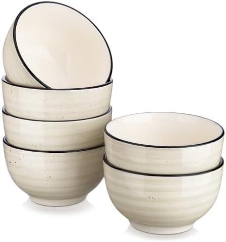 - 3 vancasso Bonbon Lot de 6 bols à céréales en grès de 720 ml – Passe au micro-ondes et au lave-vaisselle – Sans plomb - Beige – Pour pâtes, avoine, salade, dessert