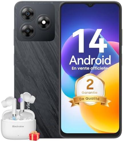 Blackview WAVE 8C Android 14 Smartphone Pas Cher 6Go+64Go/TF-2To, Octa Core, Écran 6.56″HD+, 4700mAh/10W Charge Rapide, 13MP+8MP, téléphones portables débloqués 4G Dual SIM, Face ID/GPS/2Ans Garantie