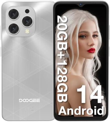 DOOGEE N55 Plus Telephone Portable 20GB RAM+128GB ROM(TF 1TB) Android 14 Smartphone Pas Cher, Écran 6.56″ HD+ 90Hz, 13MP+8MP, 5150mAh, Octa Core, 4G LTE/5G WiFi/OTG/Widevine L1, Argent