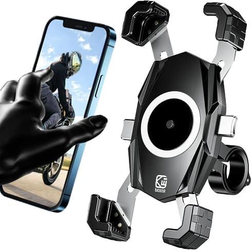 Kewig Support de téléphone pour moto, support de téléphone pour vélo, verrouillage et libération automatiques, pince de fixation pour guidon de vélo, scooter de 10,2 à 17,5 cm