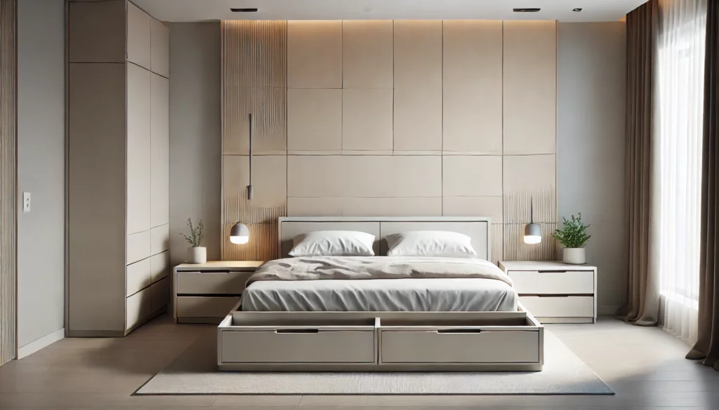 - Rangement intégré : Équipé de tiroirs spacieux pour optimiser l’espace de rangement dans votre chambre.