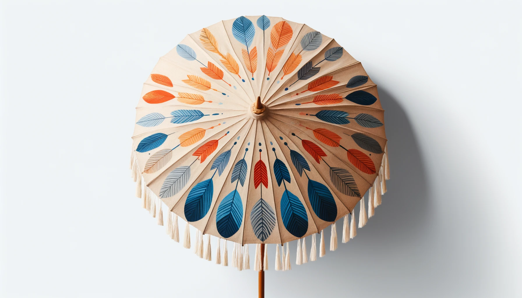 L’intérêt du Parasol Vintage 2x2m en Aluminium Imitation Bois et Toile Écrue Motifs Feuilles Marron, Bleu et Terracotta « Nicolo »