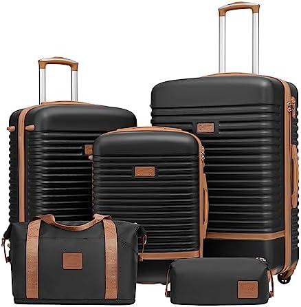 COOLIFE ABS Hard Shell Travel Suitcase with 4 Wheels TSA Lock. The Suitcase Contains 1 Travel Bag and 1 Toiletry Bag, Black / brown, Hard Suitcase Travel Suitcase
