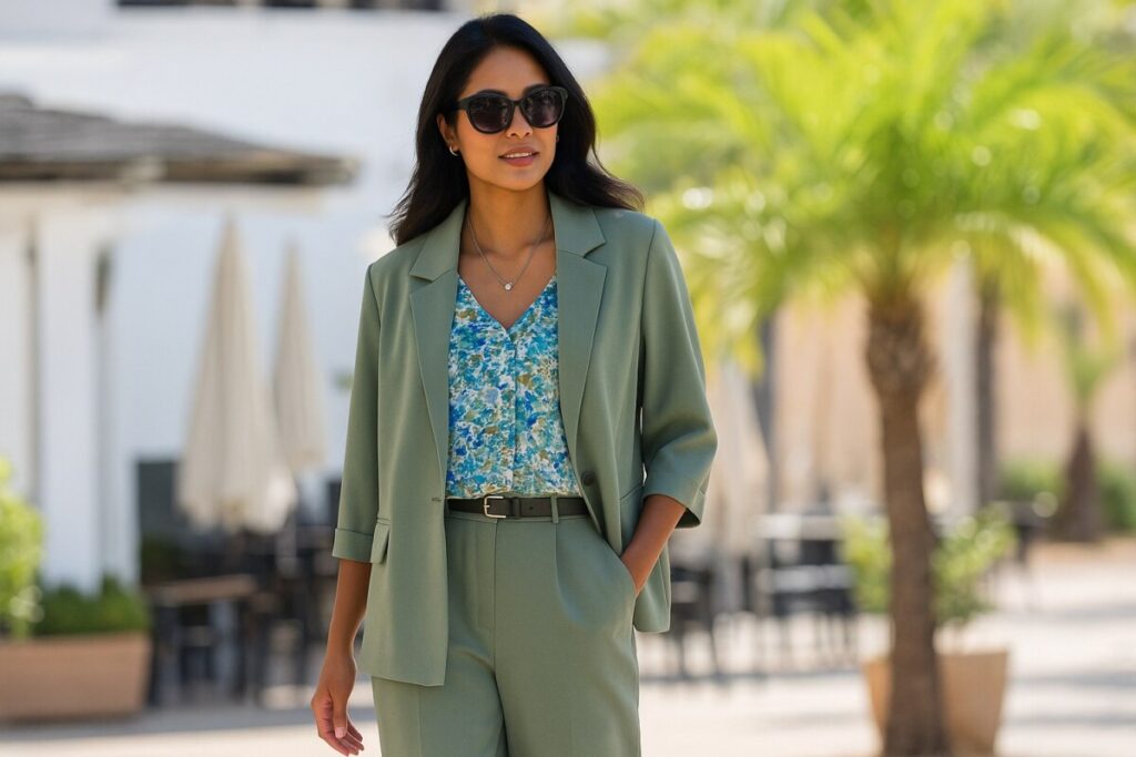 Cette veste, c’est un peu le joker du vestiaire. Elle s’adapte à toutes les situations : au travail, pour un rendez-vous, une réunion ou même pour une tenue habillée sans effort. Le kaki clair est un coloris doux, flatteur pour toutes les carnations et ultra facile à assortir.