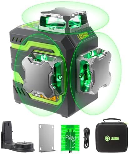 - 1 LasGoo LG-3DM Niveau laser à faisceau vert, laser à croix laser 3×360° pour la construction et l’accrochage d’images, batterie rechargeable 5200mAh, câble Type-C, support magnétique pivotant inclus