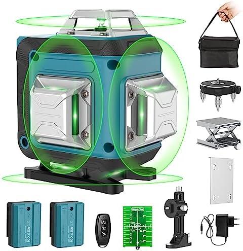 Niveau Laser Vert 4×360, Niveau Laser Professionnel 4D 16 Fils, Niveau Laser Rotatif Autonivelant, IP54 Antipoussière, Etanche, 2 Batteries Rechargeables de 4800 mAh