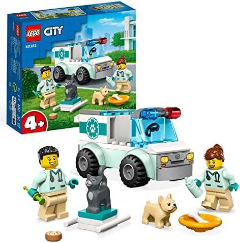 - 2 LEGO 60382 City L’Intervention du Véhicule Vétérinaire, Jouet Ambulance pour Animaux, avec 2 Minifigurines et Figurines Chat et Chien, Enfants 4 Ans