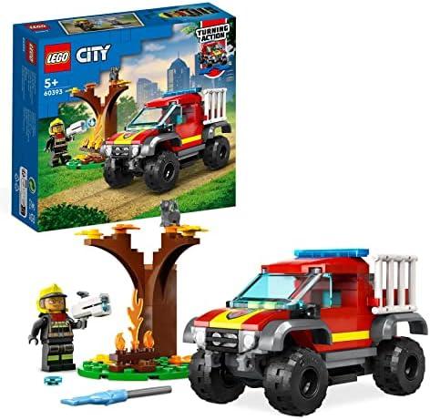 - 1 LEGO 60393 City Sauvetage en Tout-Terrain des Pompiers, Cadeau de Noël, Jouet Camion avec Lanceur d’Éléments d’eau, Minifigurine Pompier et Chat, Garçons et Filles de 5 Ans