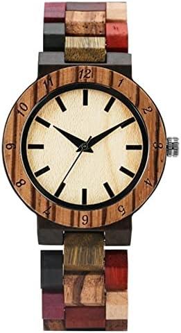 NIBEIWEISHOP Fait Main Lignes Bleues irrégulières Montre Femme Montre en Bois de Couleur Mixte Bracelet en Bois réglable Montre Femme Cadeaux de Mariage (Color : Simple Dial)