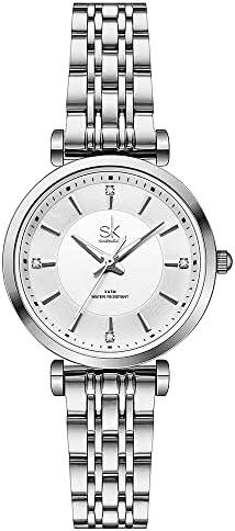 SHENGKE SK Montre Classique pour Femme avec Bracelet en Acier Inoxydable et Bracelet en Cuir véritable