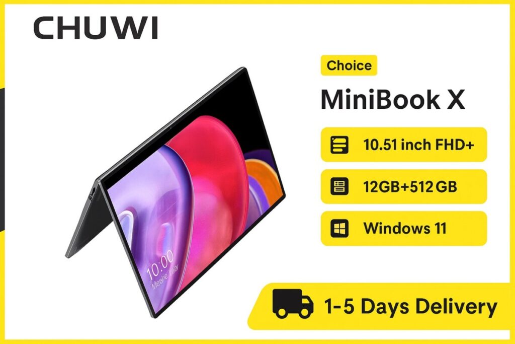 Le CHUWI MiniBook X 2-en-1 coche toutes les cases : design, légèreté, performance, et flexibilité. Proposé à seulement 269,85€ avec paiement en 4 fois sans frais, c’est une affaire à saisir avant le 26 juin. Ne manquez pas cette chance de vous équiper d’un PC portable hybride ultra-compact au meilleur prix.