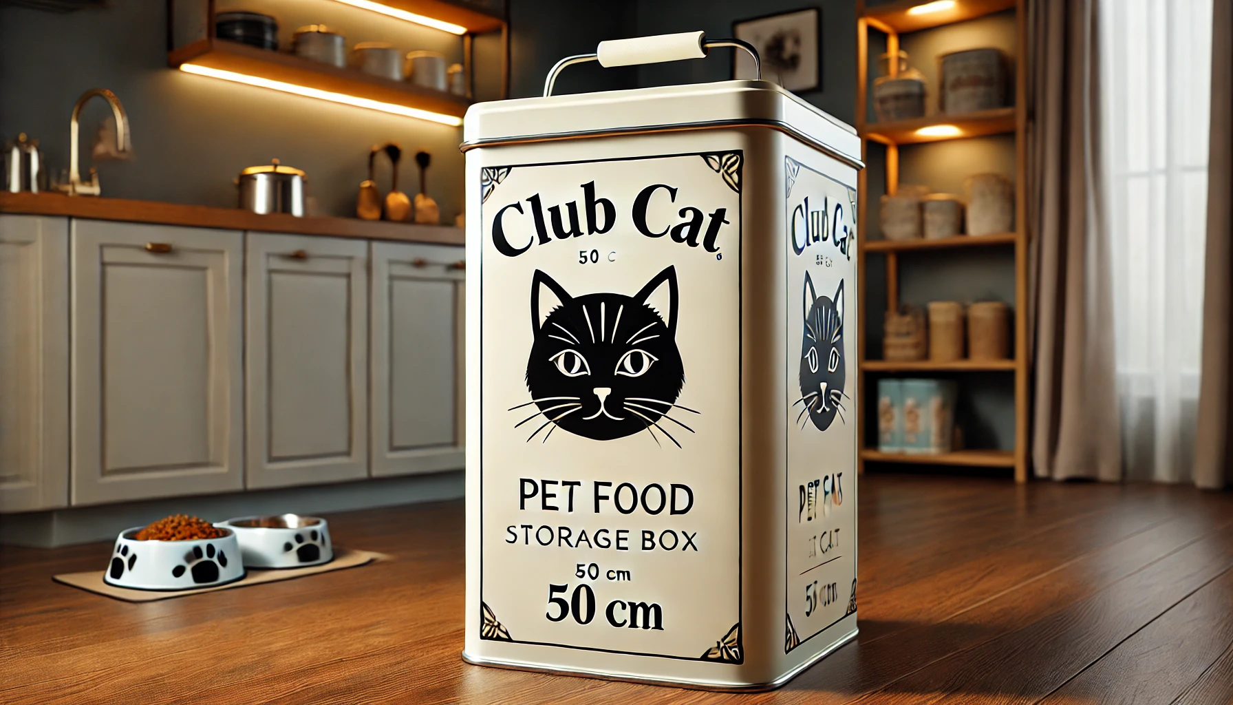 Caractéristiques techniques de la boîte à croquettes en métal Club Cat