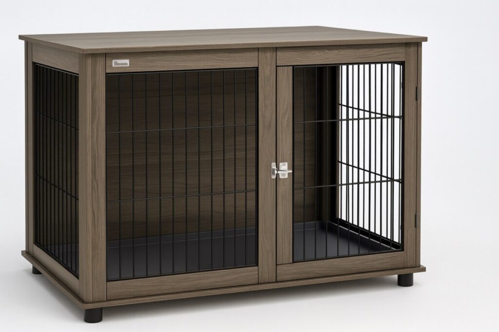 Les chiens ont besoin d’un espace bien à eux pour se sentir rassurés. Cette cage est conçue pour leur offrir un coin sécurisé et douillet, tout en gardant une touche décorative. Contrairement aux cages métalliques classiques, son fini bois gris la transforme en véritable meuble qui se fond dans la décoration intérieure.