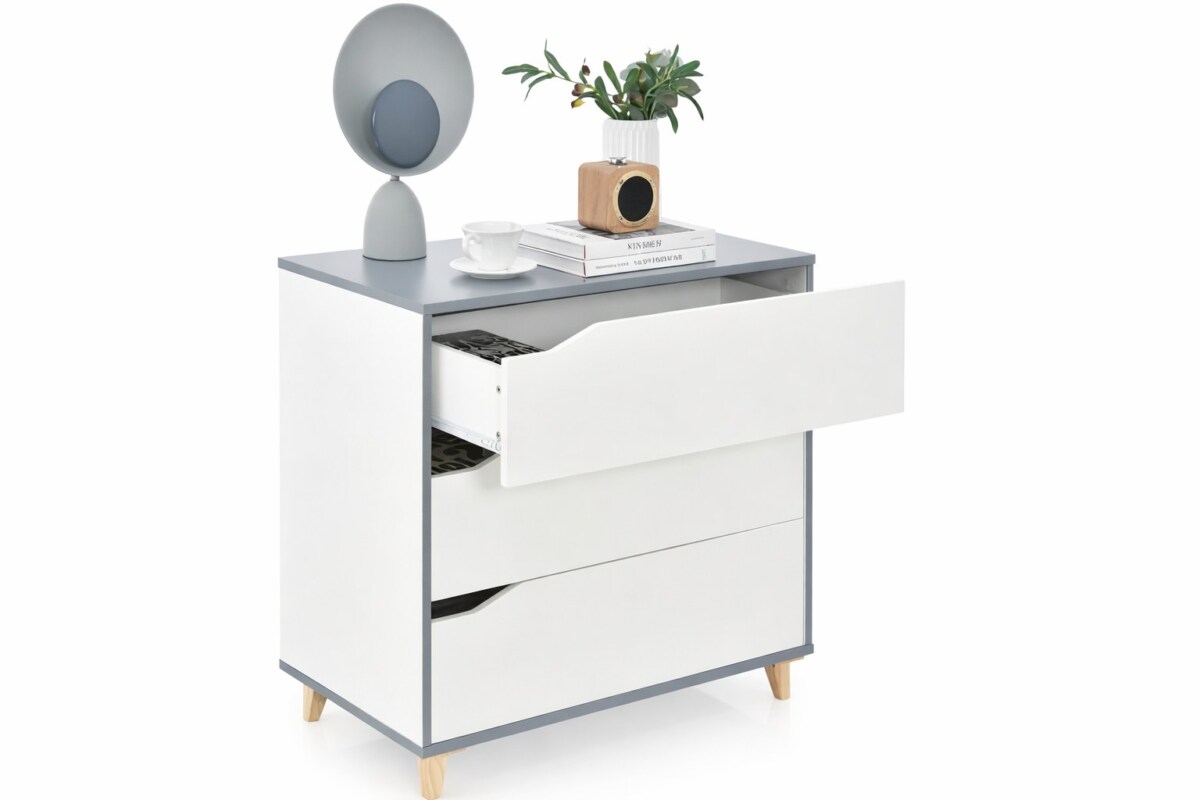 Cette commode séduit par sa ligne sobre et épurée, ses poignées intégrées invisibles et son coloris blanc qui s’adapte à tous les intérieurs. Avec trois tiroirs spacieux, elle permet de ranger vêtements, linge de maison, documents ou accessoires en toute discrétion.