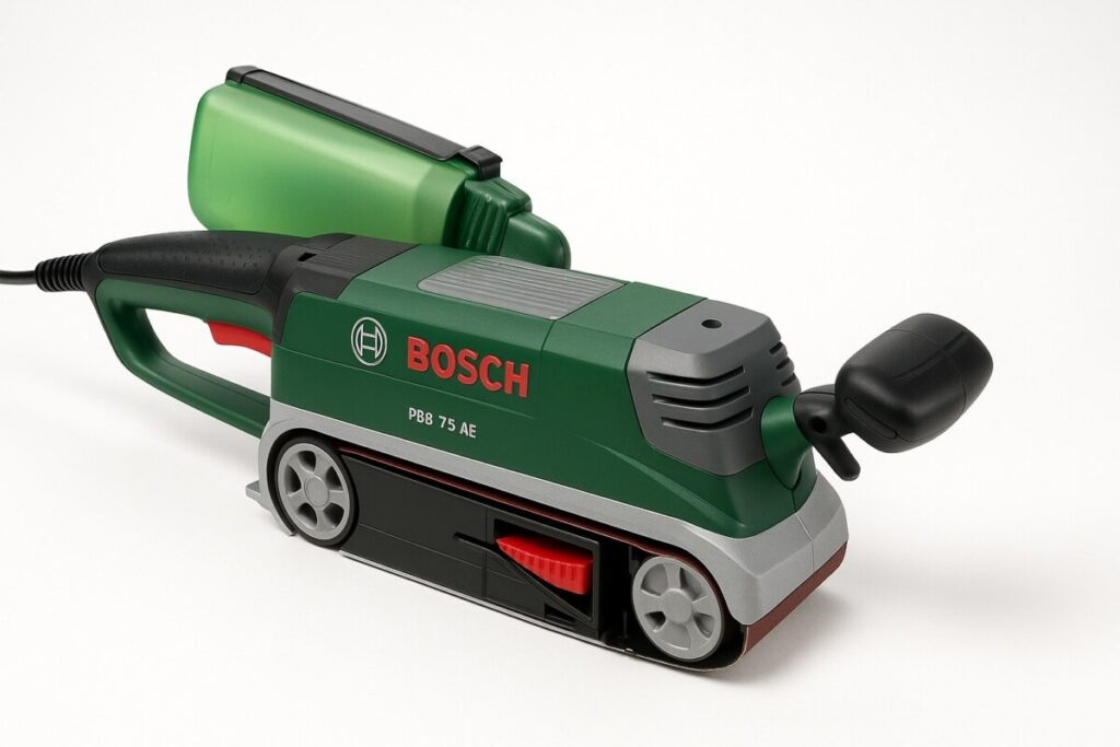 La PBS 75 AE se distingue par sa puissance et sa précision. Son système de centrage automatique de la bande garantit un maintien parfait de l’abrasif, évitant les décalages gênants en cours de travail. La régulation électronique de la vitesse permet d’adapter l’outil au type de bois ou de surface à poncer, pour des résultats impeccables sans risque d’endommager le matériau.