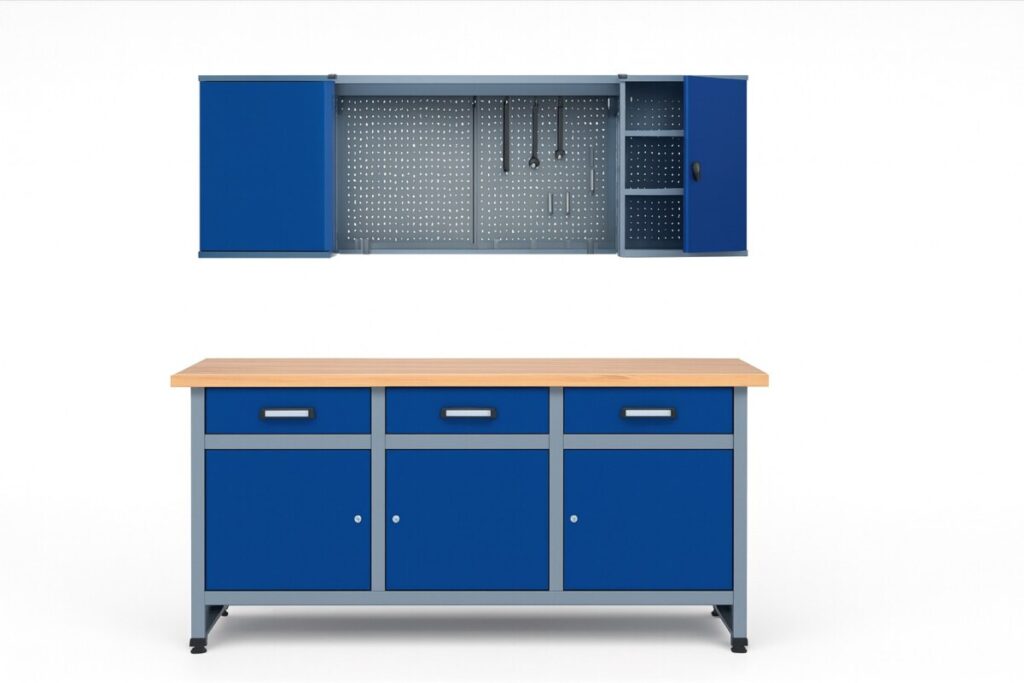 - Équipement : établi + élément haut intégré pour le rangement