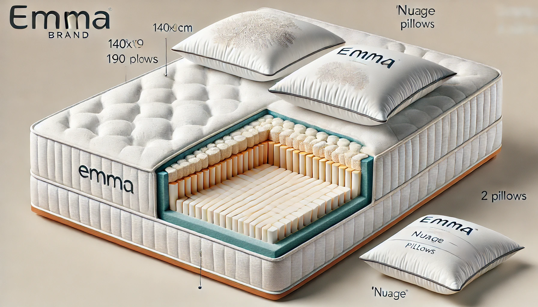 Le pack Emma Matelas Confort avec un oreiller sommeil réparateur est conçu pour offrir une expérience de sommeil optimale grâce à des matériaux de haute qualité et une conception ergonomique.