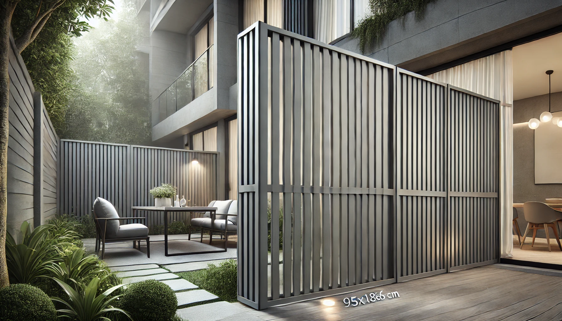 Avec ses dimensions de 95 x 186 cm, ce panneau peut être utilisé seul ou combiné avec d’autres pour créer une séparation harmonieuse et modulable selon vos besoins. Il est livré avec tous les accessoires de montage pour une installation rapide et sécurisée.